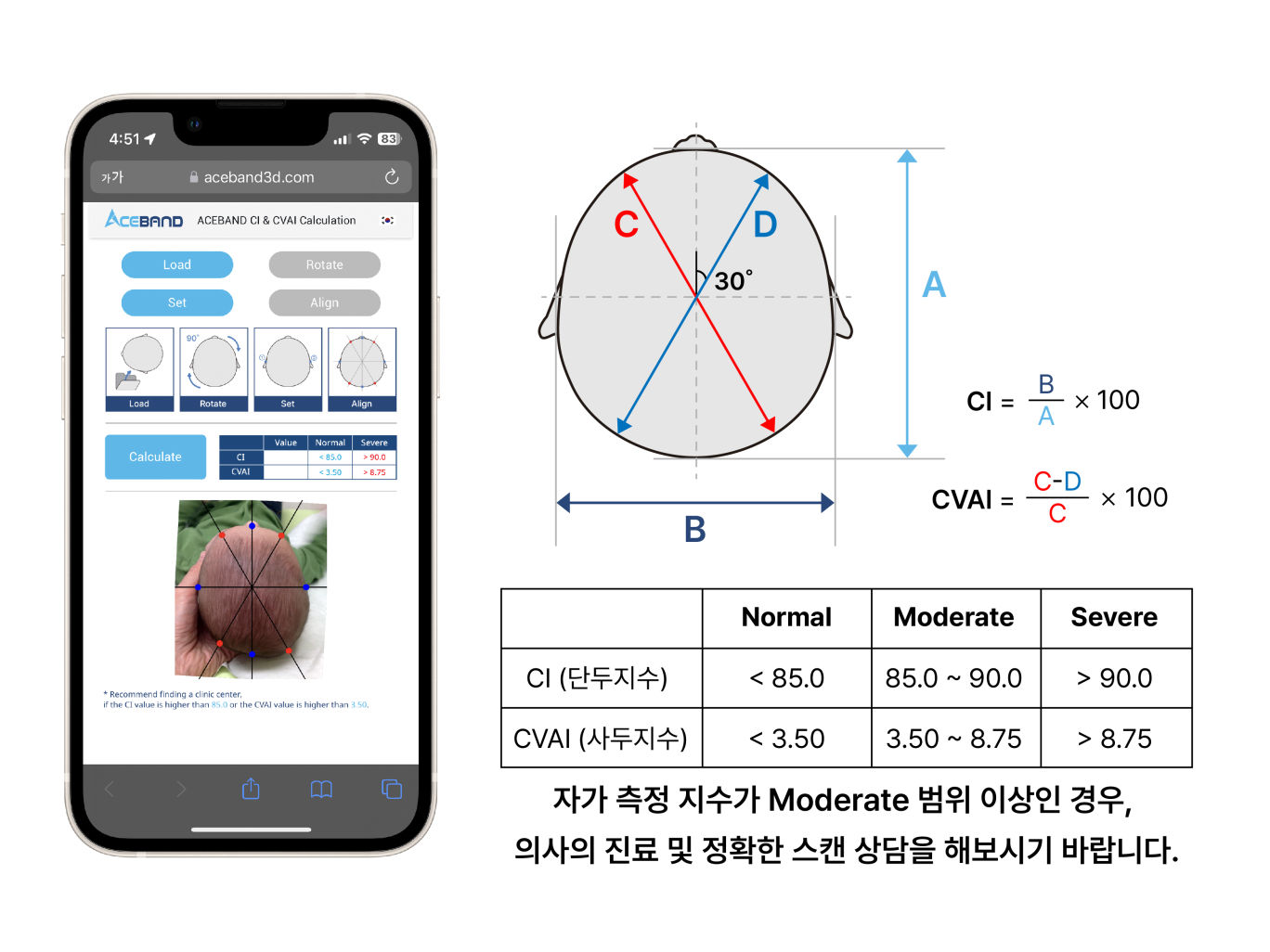 두상 변형 지수를 자가 측정할 수 있습니다.